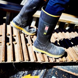 Botas de goma de seguridad premium para comodidad y rendimiento, sin importar las condiciones. Hechas a mano, estas botas están elaboradas por expertos con caucho natural duradero, con una entresuela de acero resistente a la perforación, una puntera interna de acero y una puntera externa resistente a la abrasión para una máxima protección. Bota ergonómica sin aislamiento con forro interior de secado rápido, antimicrobiano y antibacteriano. La suela de seguridad es robusta y está diseñada para expulsar rápidamente el barro, y la entresuela de goma acolchada y la almohadilla amortiguadora Politech® brindan comodidad durante todo el día. Nuestra gama de botas de goma Quatro de Skellerup ofrece niveles excepcionales de comodidad en superficies duras como el hormigón, lo que las hace muy populares en las granjas lecheras. También incluyen una guía de recorte si prefiere una bota hasta la pantorrilla.