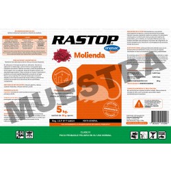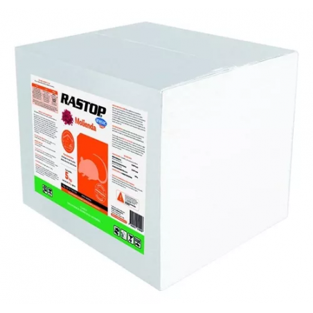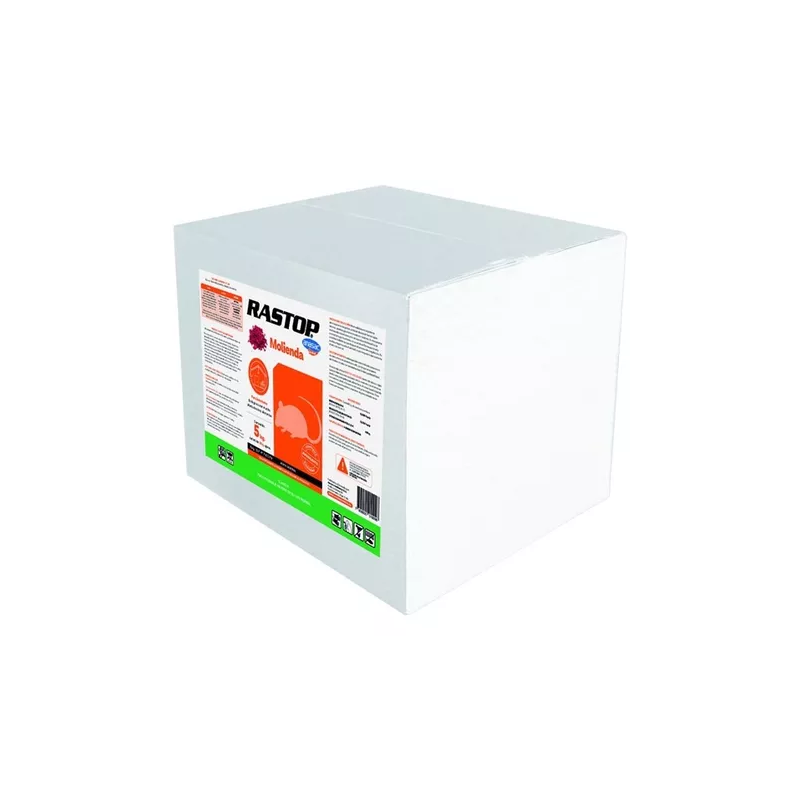 Rodenticida en pellet para uso intradomiciliario y lugares interiores en general (oficinas, bodegas, lugares públicos, patios para planteles de animles). Se puede aplicar en cocinas, lavaderos, entretechos y lugares resguardados. Rastop Pellet, es un efectivo rodenticida de segunda generación, formulado con Bromadiolona como ingrediente activo, el cual presenta un excelente grado de control y un alto grado de seguridad para animales no objetivos y animales domésticos. Rastop Pellet, es efectivo en una sola dosis, mata todo tipo de ratas y ratones, urbanos y silvestres al consumir su dosis letal en una sola ingesta, incluso aquellos roedores resistentes a otros anticoagulantes convencionales. Rastop Pellet no produce rechazos en la colonia, ya que posee una fórmula muy apetecida, debido a su atractivo olor, sabor y textura. Rastop Pellet es un efectivo y potente inhibidor de la síntesis de protrombina. Ingrediente activo: Bromadiolona y Benzoato de Denatonio.
